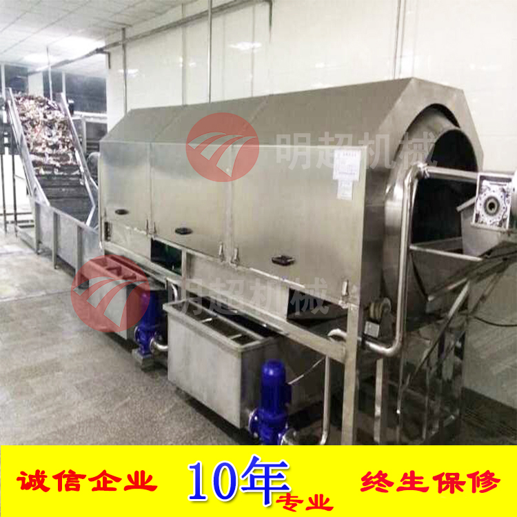 洗袋機主要由箱體、滾筒、噴淋管道、電加熱裝置,調速機、出水裝置等主要部分組成,整機采用sus304不銹鋼材質制作,完全符合我國對食品衛生的需求,滾筒采用高科技進行沖孔,沖孔的標準均勻,內側安裝毛刷,毛刷采用安徽名優產品,對于清洗包裝袋起到一個不可忽視的作用,為了防止包裝袋與包裝袋摩擦,防止在清洗的過程中弄破包裝袋,我們采用了特有的設計,不會對包裝袋造成二次損壞,為食品廠杜絕了不必要的浪費,收到食品企業用戶的一致好評,另外該機不用蒸汽加熱而是采用電加熱,為企業節省了購買鍋爐的資金,節省了聘請工人工資。水溫一般在30-50攝氏度為宜,一個水槽可添加洗滌液和火堿,根據自己的情況選擇怎么洗滌,第二個水槽是對清洗過后的包裝袋,包裝袋表面含有洗滌液進行清洗,為了再裝箱過程中方便,快捷,可鏈接翻轉風干機。洗袋機還采用調速機可選用變頻調速或者變頻調速,水槽內的水是可以循環利用的,為企業節約了水資源的浪費,調速器和齒輪互相對接,使滾筒運轉正常,工作完成后,每個水槽外側均裝有防塵出水口,電器采用正泰電器,為了防止受潮,都采用了防水防潮安排,不會造成在工作過程中,出現這些情況。保證洗袋機正常運轉。
