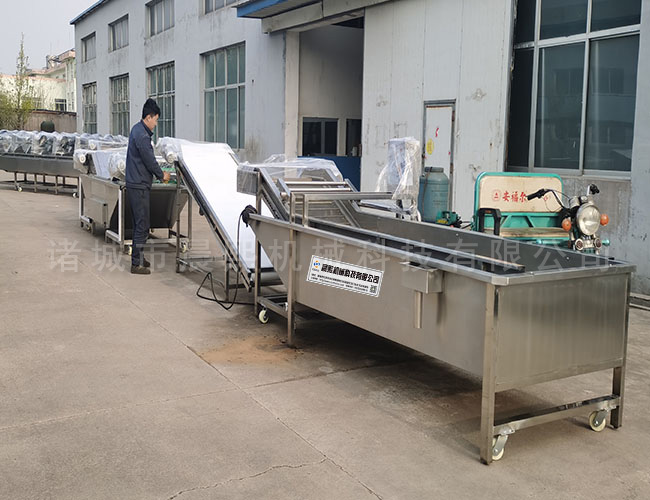 晨熙機械研發的,型號多種,價格不同,可根據用戶需求,為您量身定做設備,提供廠房規劃,設備方案,售后服務等等,垂詢。連續式葉菜類蔬菜氣泡清洗機產品采用不銹鋼制造而成、堅固耐用、設備清洗的原料不會受損傷,從而達到洗潔凈高、節省勞力、節水、設備 性穩定,可靠等效果、我公司根據有些地區土質粘性大,葉類蔬菜難清洗的特點設計生產的紅薯去泥清洗機、集自動連續清洗,高壓噴淋二次清洗確保產品洗凈率。被清洗物潔凈高出人工常規洗法三倍以上。 本機采用高壓水流和氣泡發生裝置沖擊被清洗物體表面,葉類蔬菜去泥氣泡清洗機,氣泡在與物體接觸時破裂產生的能量,會對被清洗物體表面起到一個沖擊和刷洗的作用,刷洗被清洗物體表面,將被清洗物體清洗干凈。